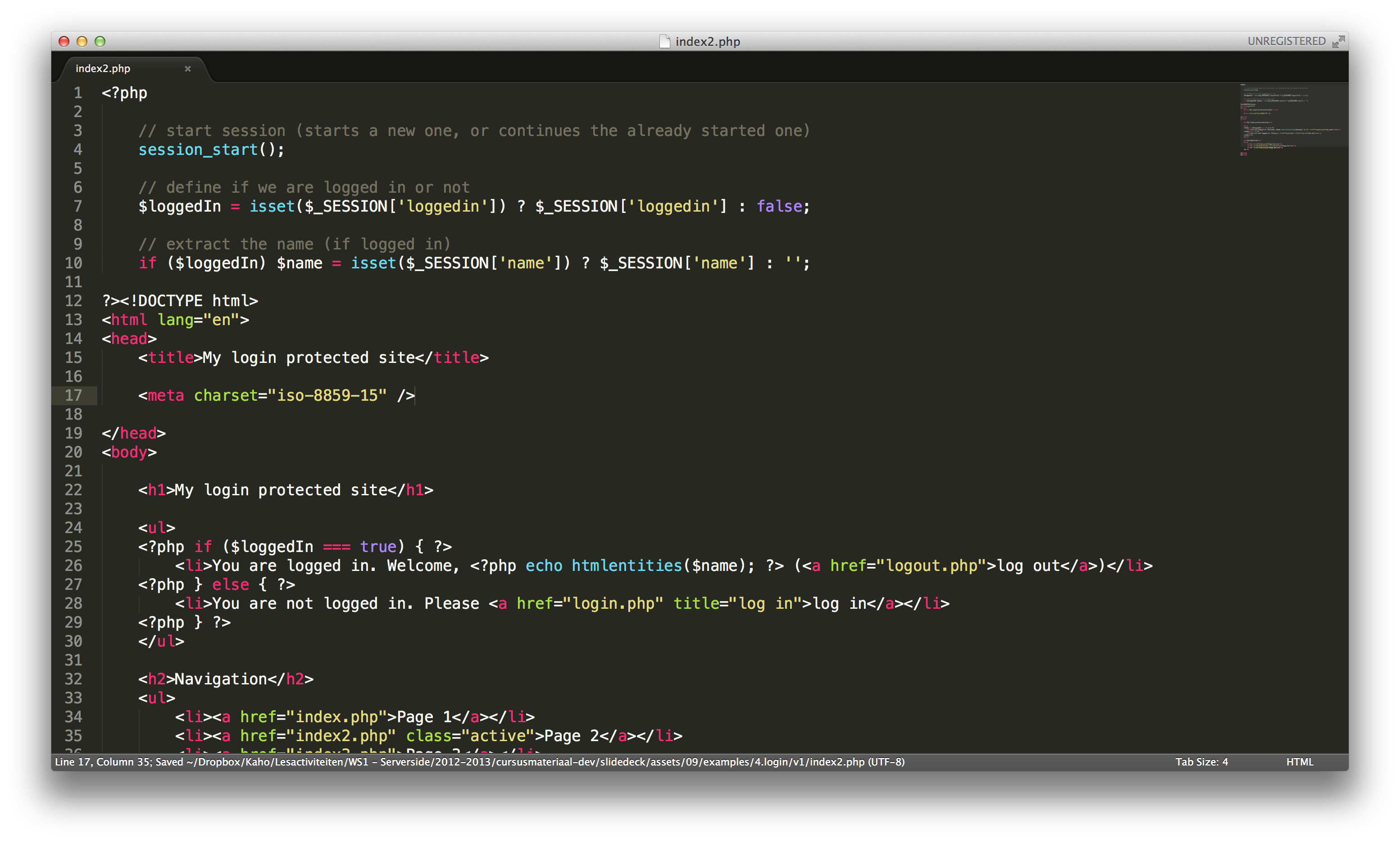 The content pages use a simple if to display the $_SESSION['user']['username'] or a request to log in